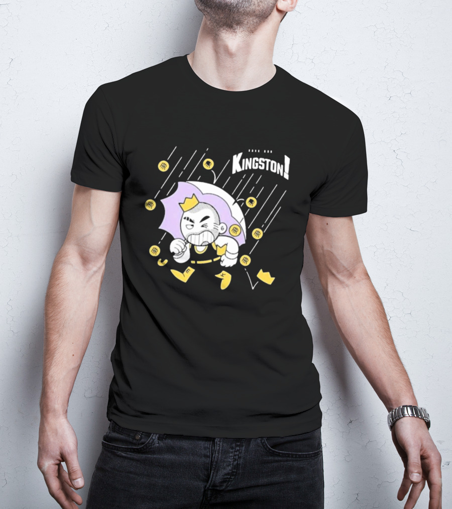 Bald Emo Kingston Character with Umbrella and Crown Symbols T-Shirt - Durable Apparel, USA Made