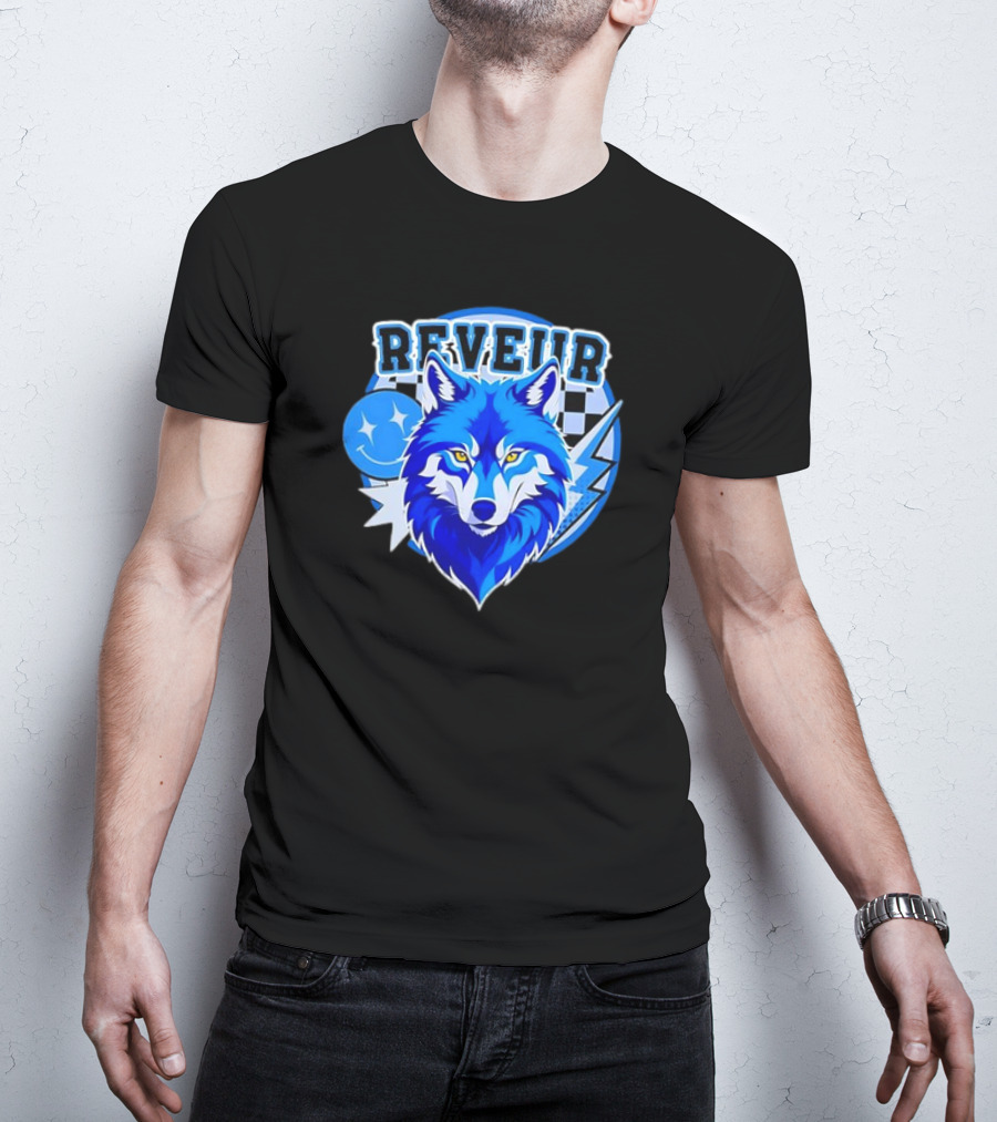 Reveur Blue Wolf Checkered Dreamers Emblem T-Shirt - Durable Apparel, USA Made